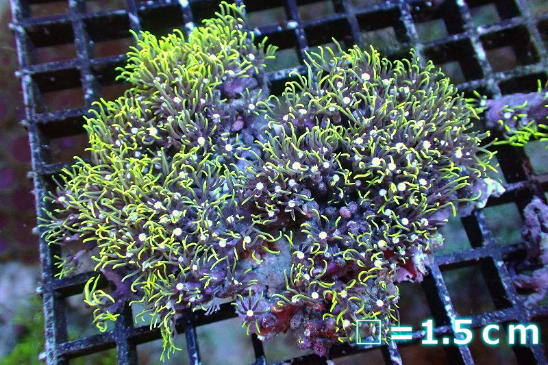 【サンゴ】【通販】スターポリプ(メタリックグリーン)Mサイズ(個体販売)No.22(生体)(サンゴ)