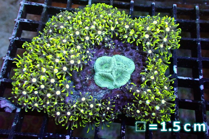 【サンゴ】【通販】スターポリプ(メタリックグリーン)Mサイズ(個体販売)No.29(生体)(サンゴ)