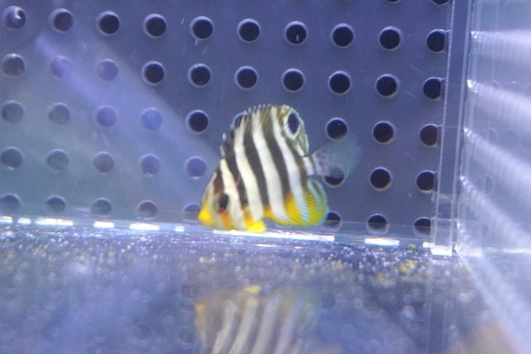 【決算セール クーポンご利用で更に10%OFF対象商品】 【海水魚・ヤッコ】【通販】人工飼料OK♪シマヤッコ(Super Tiny)(個体販売)(±2-2.5cm) No.1(生体)(海水魚)