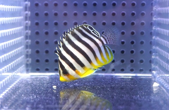 【決算セール クーポンご利用で更に10%OFF対象商品】 【海水魚・ヤッコ】【通販】人工飼料OK♪シマヤッコ(S)(個体販売)(±4.5cm) No.4(生体)(海水魚)