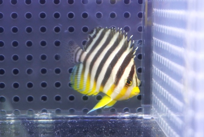 【決算セール クーポンご利用で更に10%OFF対象商品】 【海水魚・ヤッコ】【通販】状態良好♪シマヤッコ(S)(個体販売)(±4.5cm) No.6(生体)(海水魚)