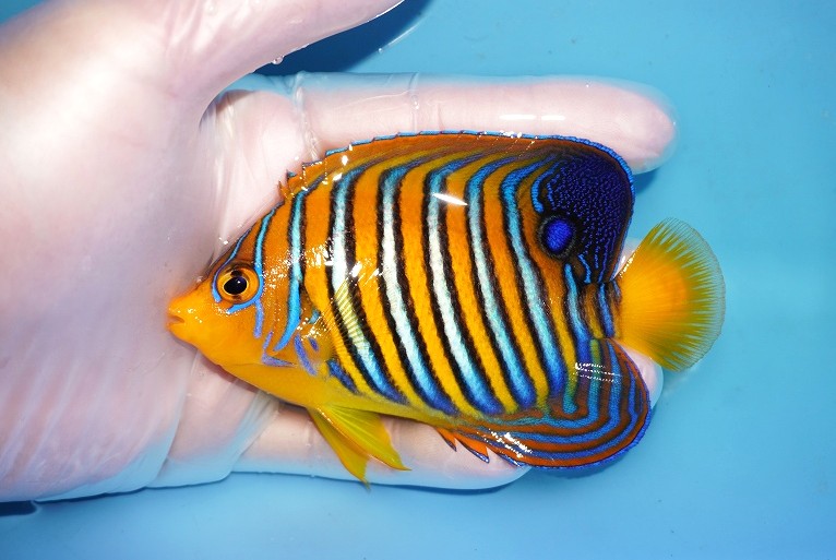 【決算セール クーポンご利用で更に10%OFF対象商品】 【海水魚・ヤッコ】【通販】人工飼料OK♪【モルディブ産】インドニシキヤッコ(M)(個体販売)(±10cm) No.27(生体)(海水魚)