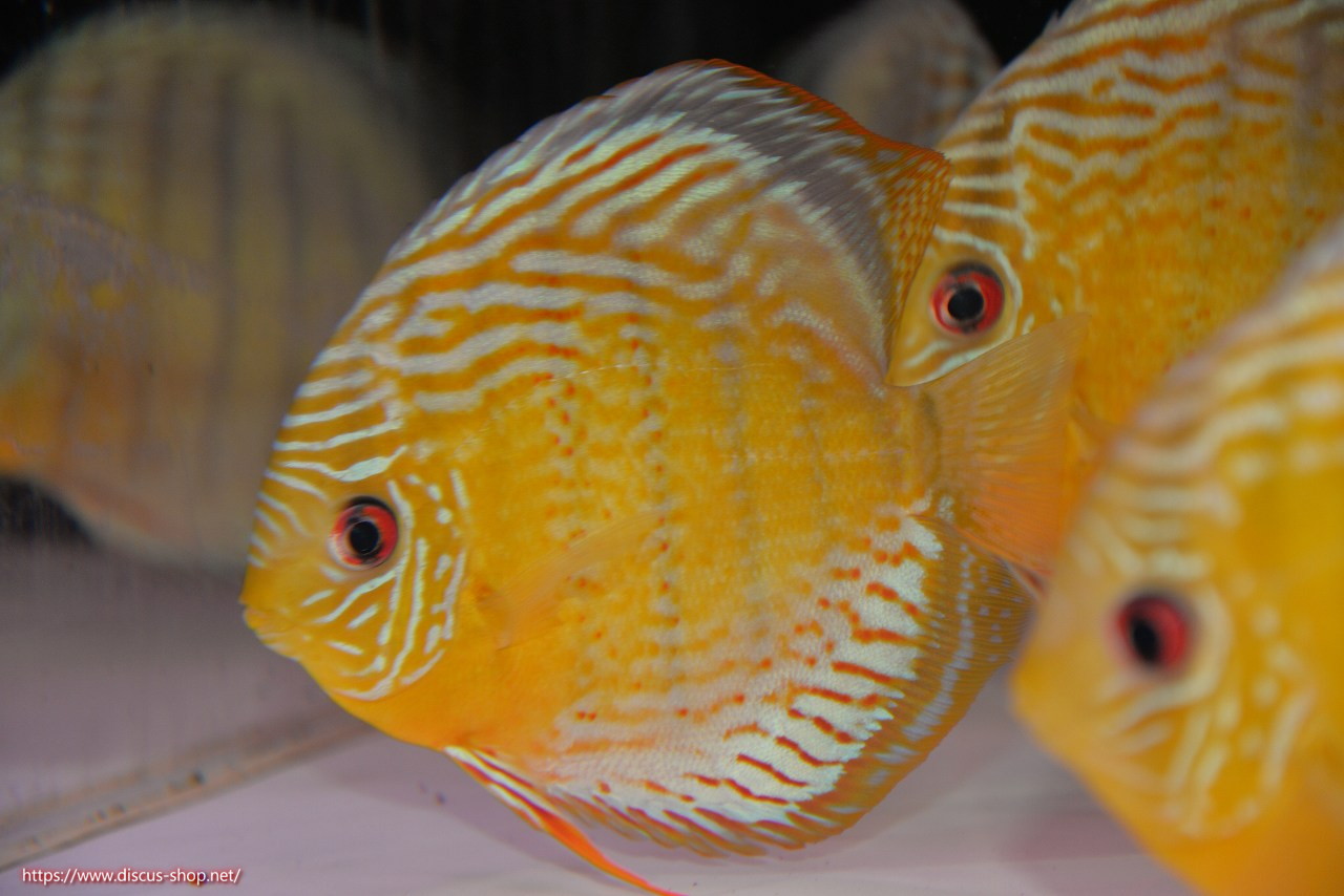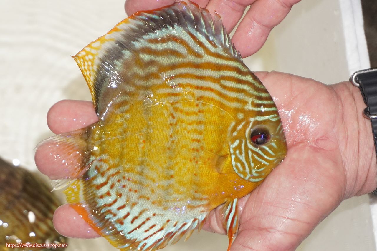 グリーンディスカスの中でも最もバリエーションが豊富でラージスポットタイプ、スポットラインタイプをはじめ、ロイヤルラインタイプなどの極上個体。またベースカラーの黄色、ホリゾンタルラインの青み、スポットの赤と最もカラフルな種となります。仕上がれば改良品種顔負けのど派手なパターンを持つ魅力的な産地の個体となります。