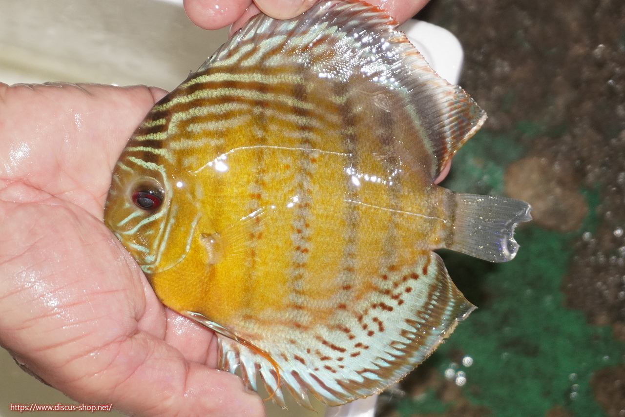 グリーンディスカスの中でも最もバリエーションが豊富でラージスポットタイプ、スポットラインタイプをはじめ、ロイヤルラインタイプなどの極上個体。またベースカラーの黄色、ホリゾンタルラインの青み、スポットの赤と最もカラフルな種となります。仕上がれば改良品種顔負けのど派手なパターンを持つ魅力的な産地の個体となります。