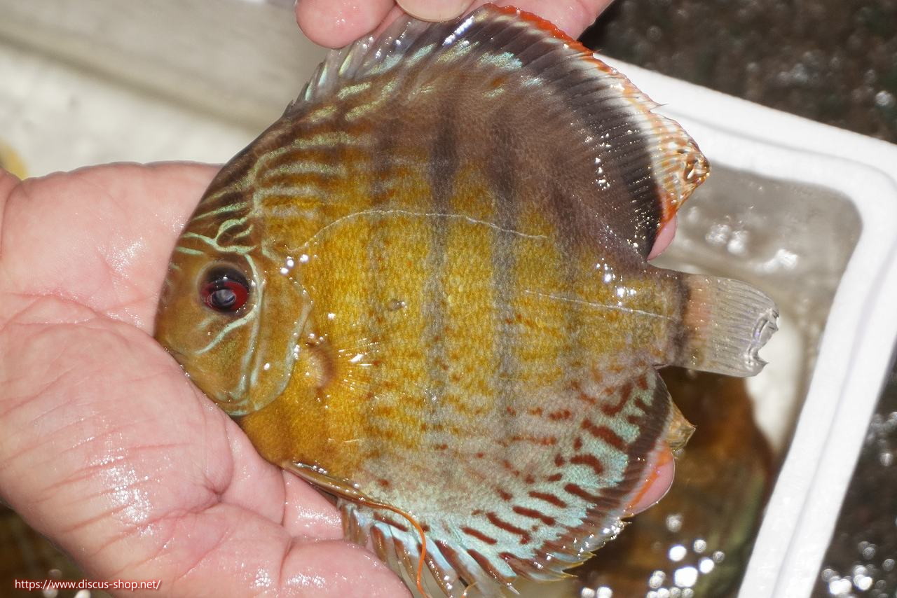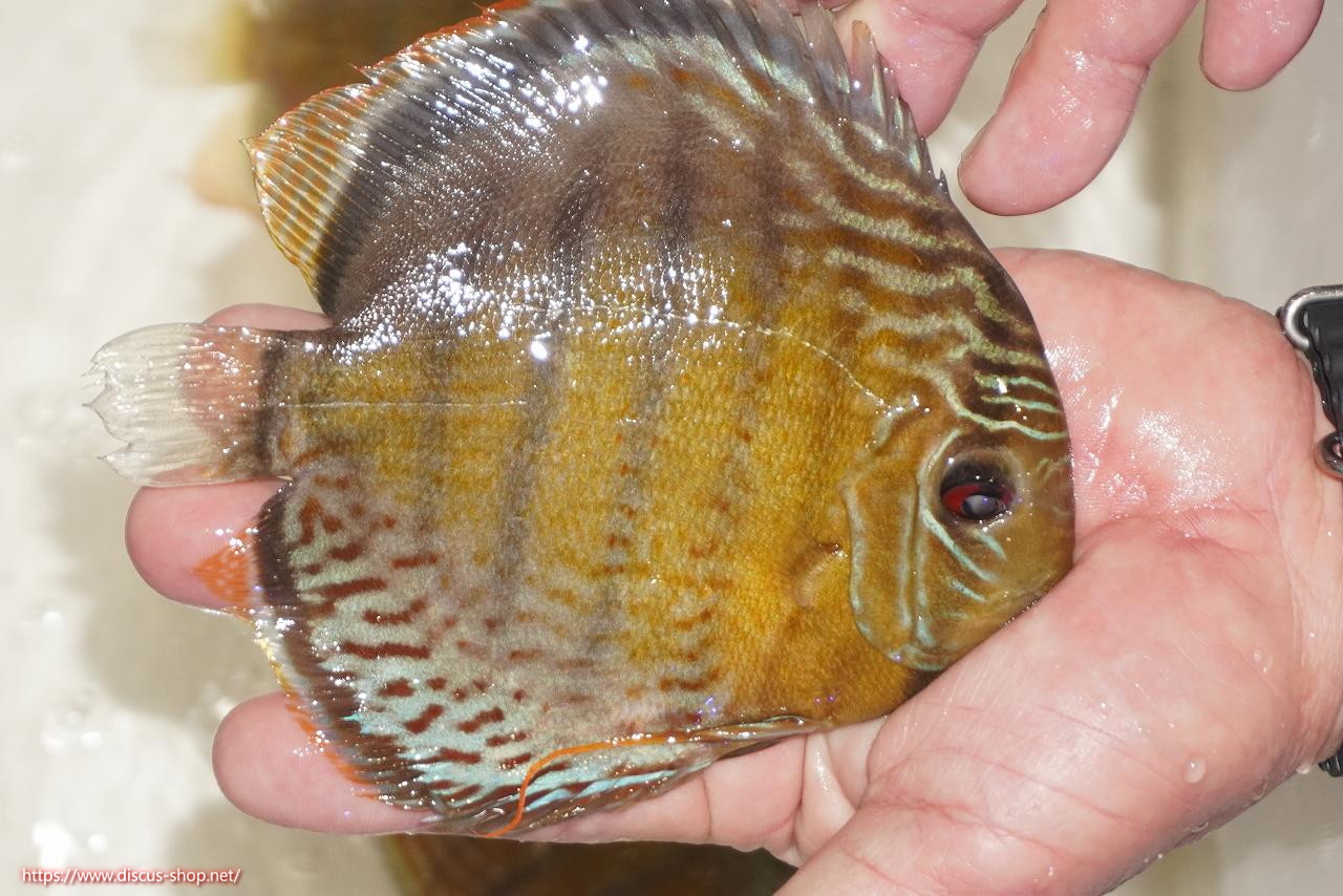 グリーンディスカスの中でも最もバリエーションが豊富でラージスポットタイプ、スポットラインタイプをはじめ、ロイヤルラインタイプなどの極上個体。またベースカラーの黄色、ホリゾンタルラインの青み、スポットの赤と最もカラフルな種となります。仕上がれば改良品種顔負けのど派手なパターンを持つ魅力的な産地の個体となります。