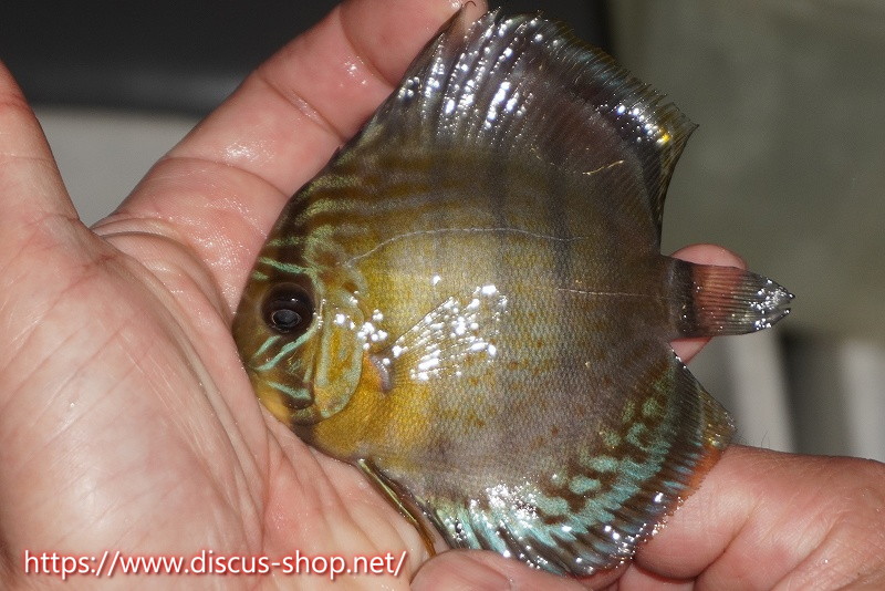グリーンディスカスらしからぬ美しいラウンドボディ、きめ細やかな鱗、上品なパウダーグリーンが特徴的なアマゾン川最上流域ペルーで採集されるグリーンディスカス。