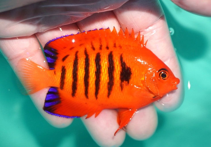 【決算セール クーポンご利用で更に10%OFF対象商品】 【海水魚・ヤッコ】【通販】状態良好♪【クリスマス島産】フレームエンゼル(Lサイズ)(個体販売)(±8cm) No.10(生体)(海水魚)