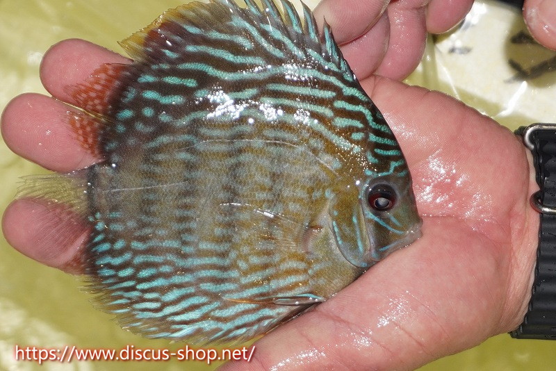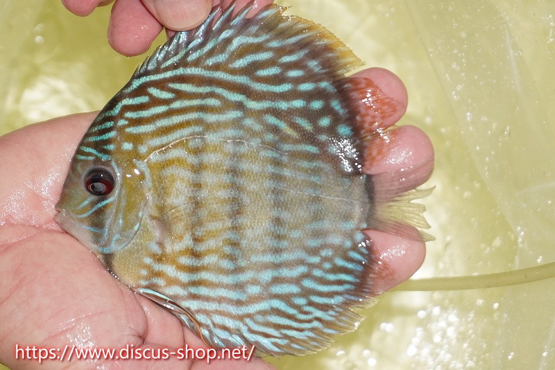 美しいラウンドフォルム、17センチを優に超える体躯でブルーディスカスの常識を覆した産地。下流域にはラインパターン、ソリッドが混生し、上流域には目を見張る様な青を発色するヘッケルが生息する。