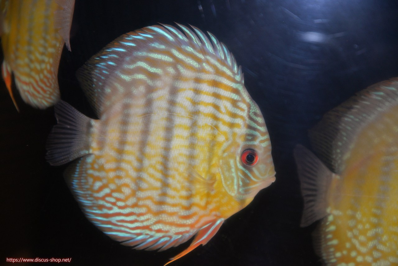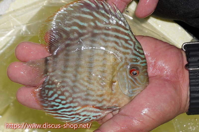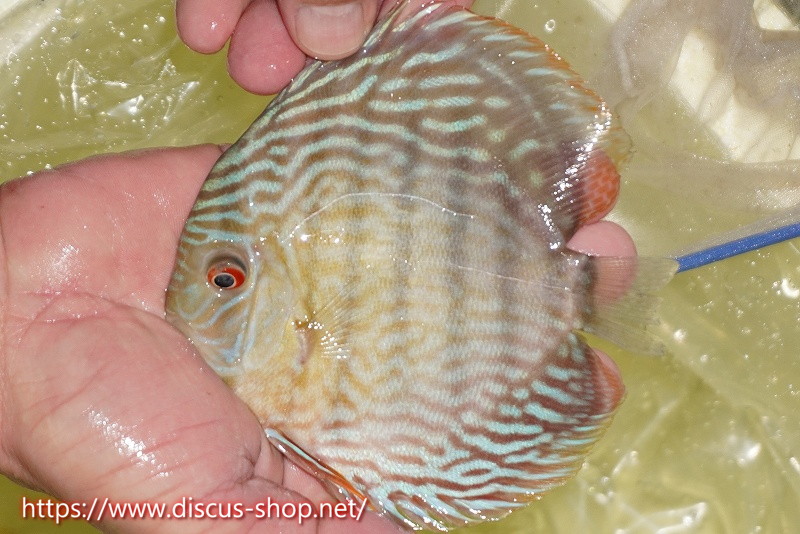 美しいラウンドフォルム、17センチを優に超える体躯でブルーディスカスの常識を覆した産地。下流域にはラインパターン、ソリッドが混生し、上流域には目を見張る様な青を発色するヘッケルが生息する。