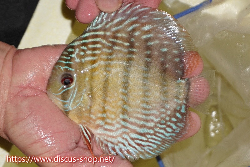 美しいラウンドフォルム、17センチを優に超える体躯でブルーディスカスの常識を覆した産地。下流域にはラインパターン、ソリッドが混生し、上流域には目を見張る様な青を発色するヘッケルが生息する。