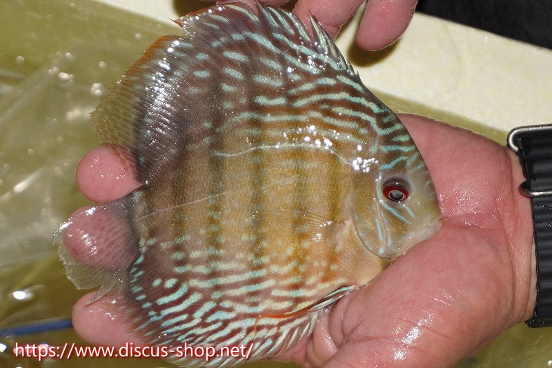 美しいラウンドフォルム、17センチを優に超える体躯でブルーディスカスの常識を覆した産地。下流域にはラインパターン、ソリッドが混生し、上流域には目を見張る様な青を発色するヘッケルが生息する。