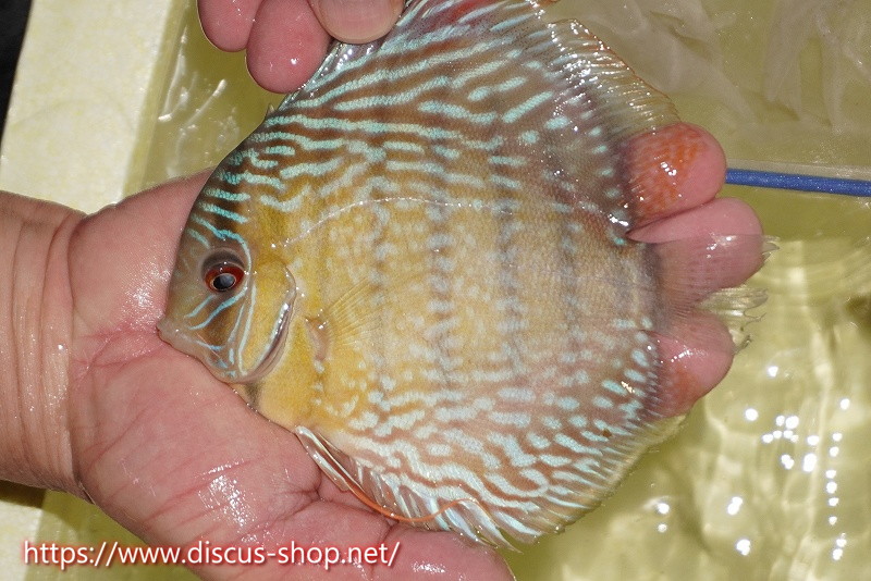 美しいラウンドフォルム、17センチを優に超える体躯でブルーディスカスの常識を覆した産地。下流域にはラインパターン、ソリッドが混生し、上流域には目を見張る様な青を発色するヘッケルが生息する。