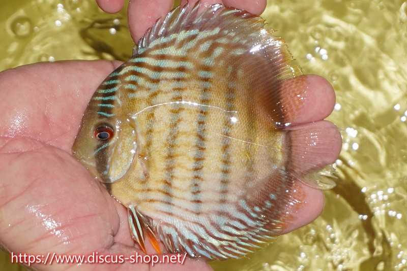 美しいラウンドフォルム、17センチを優に超える体躯でブルーディスカスの常識を覆した産地。下流域にはラインパターン、ソリッドが混生し、上流域には目を見張る様な青を発色するヘッケルが生息する。