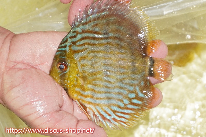 5年ぶり入荷の新産地個体。ワイルドディスカスの代名詞でもある美しいイエローベースカラー、王道ストレートラインパターンを持つロイヤルブルーの聖地。レッド発色を強く持ち非常に美しい仕上がりとなります。