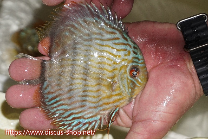 5年ぶり入荷の新産地個体。ワイルドディスカスの代名詞でもある美しいイエローベースカラー、王道ストレートラインパターンを持つロイヤルブルーの聖地。レッド発色を強く持ち非常に美しい仕上がりとなります。