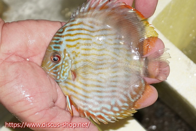 5年ぶり入荷の新産地個体。ワイルドディスカスの代名詞でもある美しいイエローベースカラー、王道ストレートラインパターンを持つロイヤルブルーの聖地。レッド発色を強く持ち非常に美しい仕上がりとなります。
