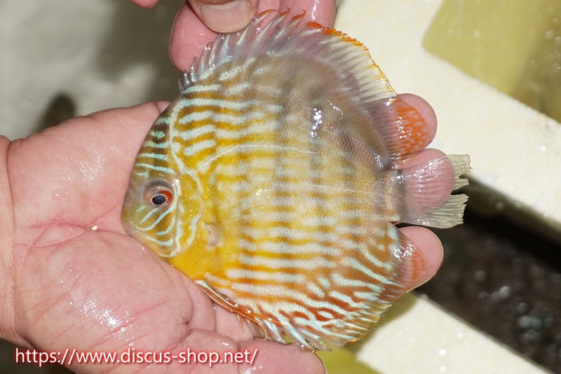 5年ぶり入荷の新産地個体。ワイルドディスカスの代名詞でもある美しいイエローベースカラー、王道ストレートラインパターンを持つロイヤルブルーの聖地。レッド発色を強く持ち非常に美しい仕上がりとなります。