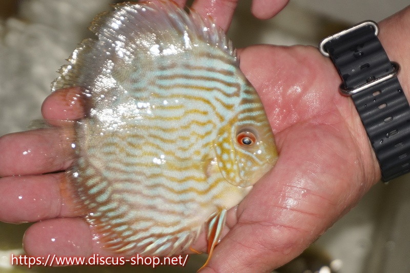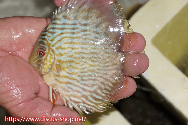 5年ぶり入荷の新産地個体。ワイルドディスカスの代名詞でもある美しいイエローベースカラー、王道ストレートラインパターンを持つロイヤルブルーの聖地。レッド発色を強く持ち非常に美しい仕上がりとなります。