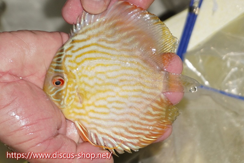 5年ぶり入荷の新産地個体。ワイルドディスカスの代名詞でもある美しいイエローベースカラー、王道ストレートラインパターンを持つロイヤルブルーの聖地。レッド発色を強く持ち非常に美しい仕上がりとなります。