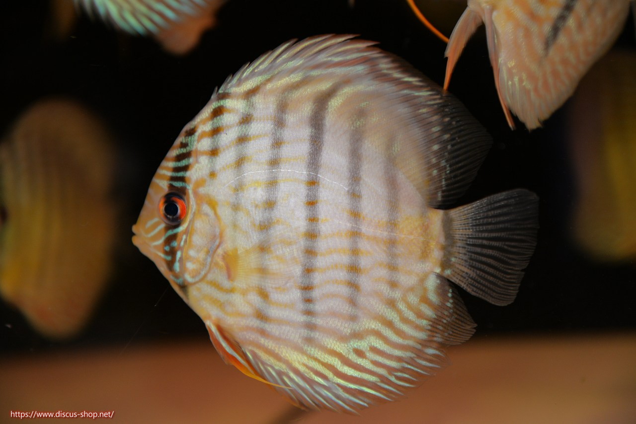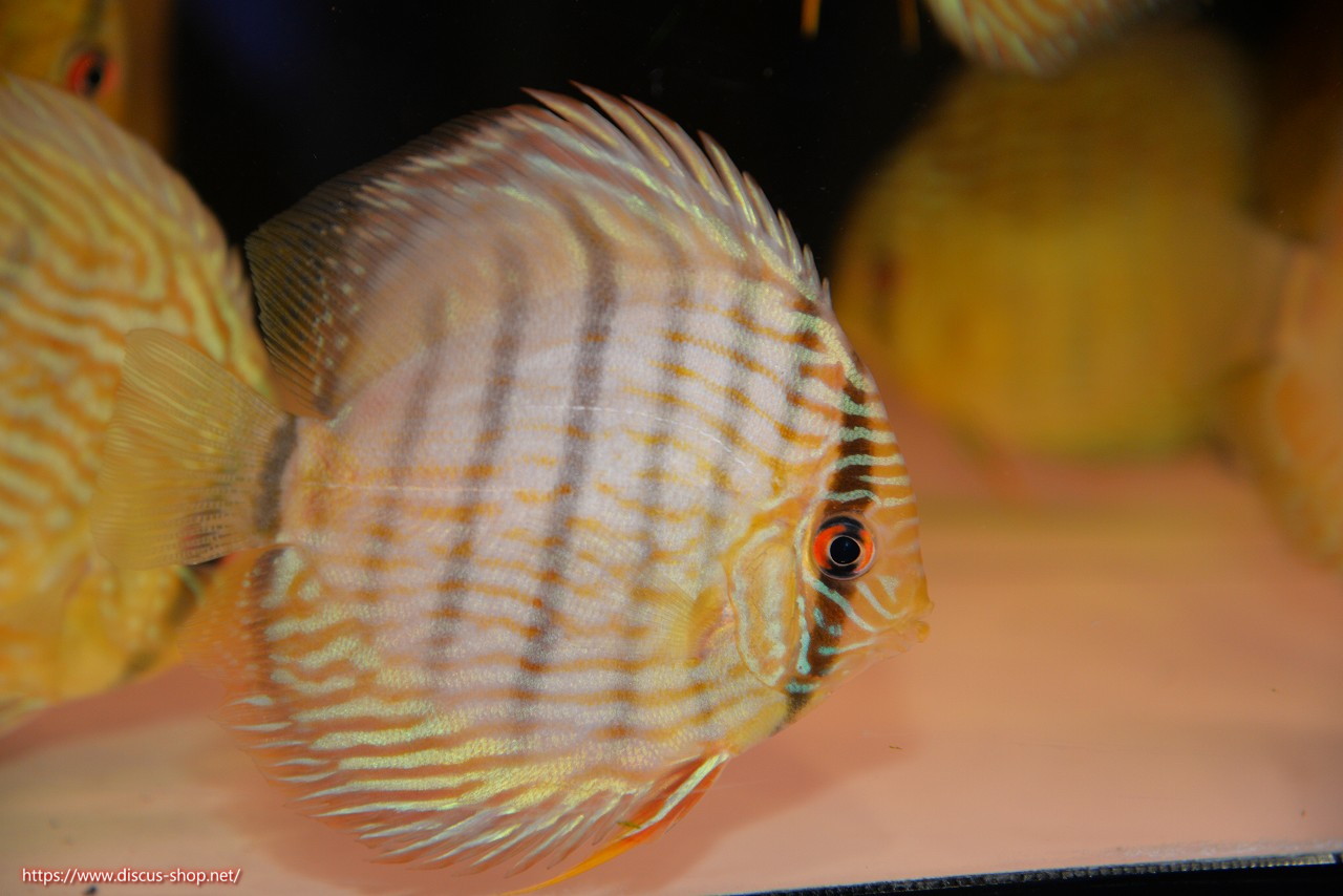 5年ぶり入荷の新産地個体。ワイルドディスカスの代名詞でもある美しいイエローベースカラー、王道ストレートラインパターンを持つロイヤルブルーの聖地。レッド発色を強く持ち非常に美しい仕上がりとなります。