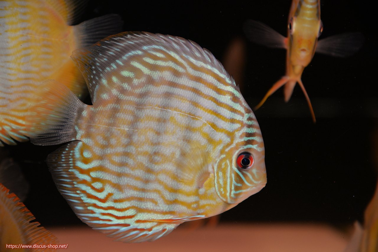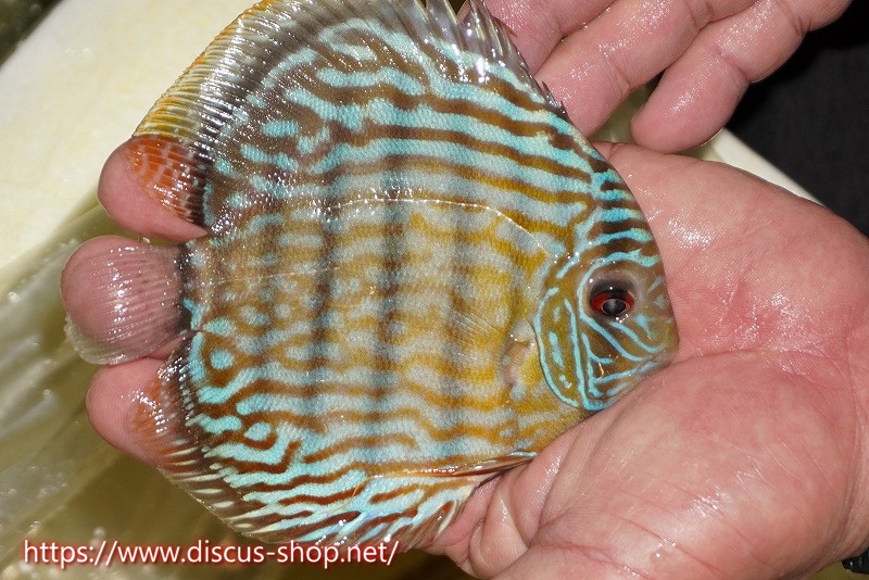 イエローベースが美しいソリッド、ソリッドセンターバー、ロイヤルブルーが混生するウラリアチャンネルに絡む有名産地。 きめ細かな鱗からの上品な発色、ロイヤル個体の明瞭なラインパターン、千差万別の個体差はワイルドディスカスの魅力を存分に持ち合わせた個体といえます。