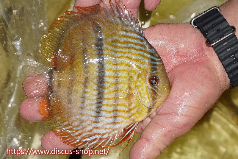 イエローベースが美しいソリッド、ソリッドセンターバー、ロイヤルブルーが混生するウラリアチャンネルに絡む有名産地。 きめ細かな鱗からの上品な発色、ロイヤル個体の明瞭なラインパターン、千差万別の個体差はワイルドディスカスの魅力を存分に持ち合わせた個体といえます。