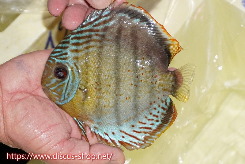 グリーンディスカスの中でも最もバリエーションが豊富でラージスポットタイプ、スポットラインタイプをはじめ、ロイヤルラインタイプなどの極上個体。またベースカラーの黄色、ホリゾンタルラインの青み、スポットの赤と最もカラフルな種となります。仕上がれば改良品種顔負けのど派手なパターンを持つ魅力的な産地の個体となります。