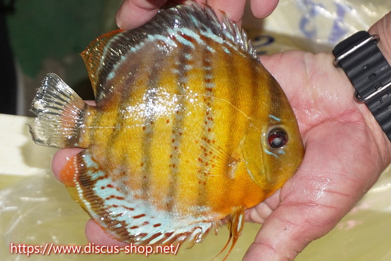 グリーンディスカスの中でも最もバリエーションが豊富でラージスポットタイプ、スポットラインタイプをはじめ、ロイヤルラインタイプなどの極上個体。またベースカラーの黄色、ホリゾンタルラインの青み、スポットの赤と最もカラフルな種となります。仕上がれば改良品種顔負けのど派手なパターンを持つ魅力的な産地の個体となります。