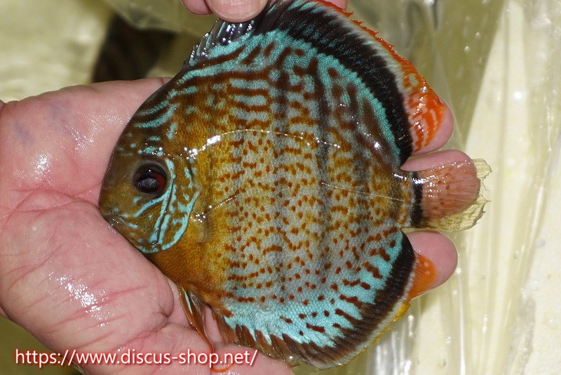 グリーンディスカスの中でも最もバリエーションが豊富でラージスポットタイプ、スポットラインタイプをはじめ、ロイヤルラインタイプなどの極上個体。またベースカラーの黄色、ホリゾンタルラインの青み、スポットの赤と最もカラフルな種となります。仕上がれば改良品種顔負けのど派手なパターンを持つ魅力的な産地の個体となります。