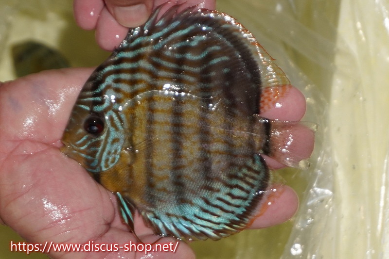 グリーンディスカスの中でも最もバリエーションが豊富でラージスポットタイプ、スポットラインタイプをはじめ、ロイヤルラインタイプなどの極上個体。またベースカラーの黄色、ホリゾンタルラインの青み、スポットの赤と最もカラフルな種となります。仕上がれば改良品種顔負けのど派手なパターンを持つ魅力的な産地の個体となります。