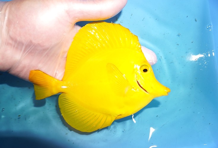 【決算セール クーポンご利用で更に10%OFF対象商品】 【海水魚・ハギ】【通販】【沖縄産ハンドコート物】キイロハギ(Lサイズ)(個体販売)(±14cm) No.4(生体)(海水魚)
