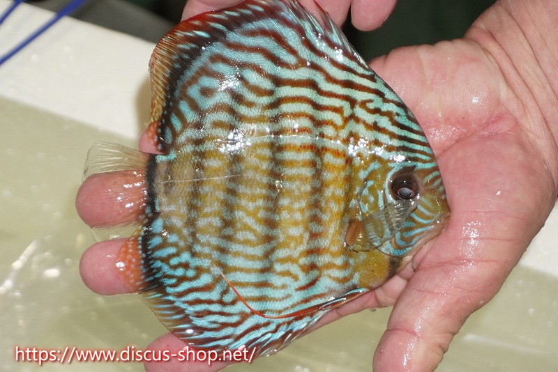 【ワイルドディスカス】【通販】【伝説の産地 7年ぶり?の入荷】ラーゴクルムクリロイヤルエメラルド(金目)【個体販売】14-16cm(生体)クルムクリ産 [abc2-60223070]