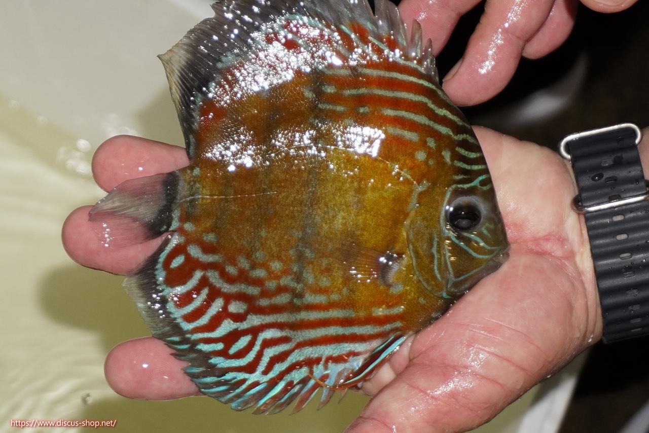 【ワイルドディスカス】【通販】【紅赤必至の産地】ラーゴイナヌ タイプレッドエディ(金目)【個体販売】15-16cm(生体)ラーゴイナヌ産 [abc4-60227060]