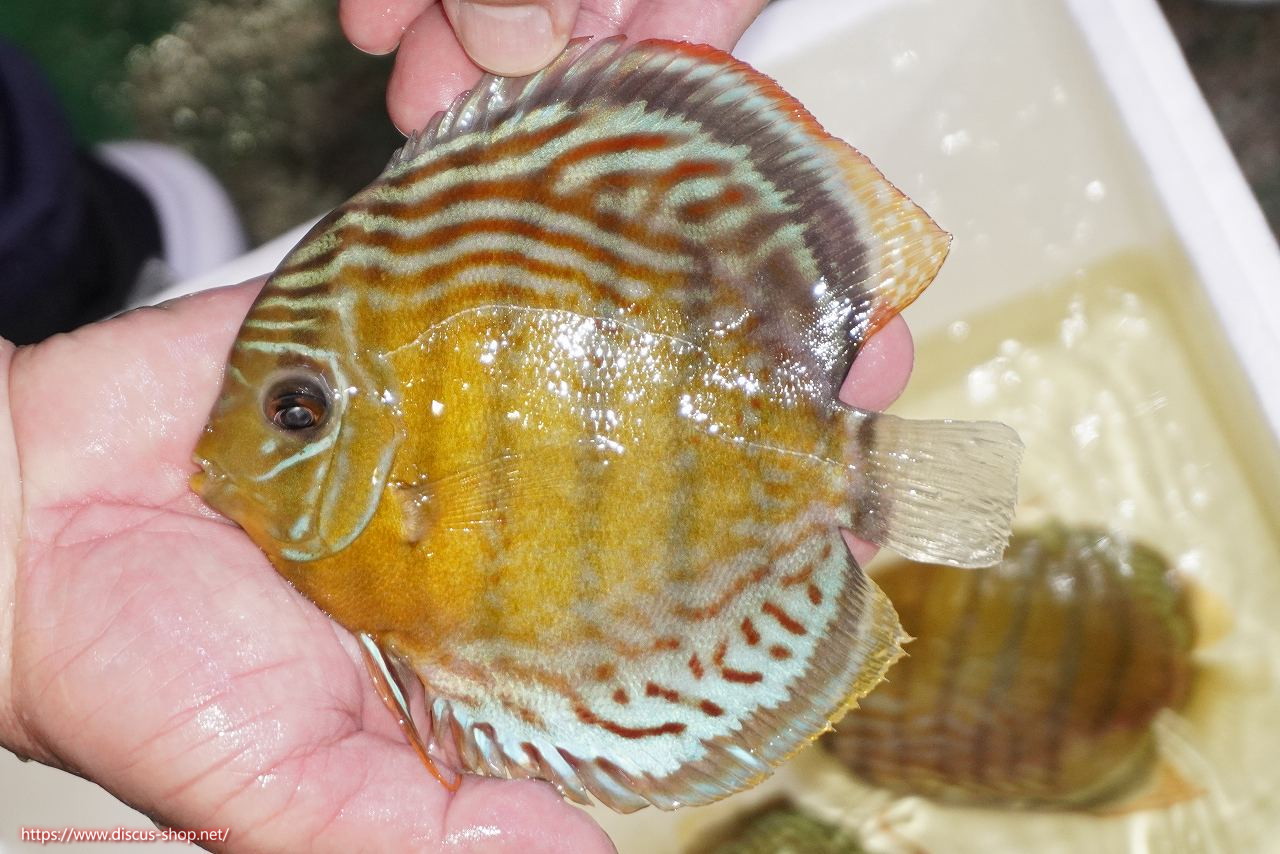 グリーンディスカスの中でも最もバリエーションが豊富でラージスポットタイプ、スポットラインタイプをはじめ、ロイヤルラインタイプなどの極上個体。またベースカラーの黄色、ホリゾンタルラインの青み、スポットの赤と最もカラフルな種となります。仕上がれば改良品種顔負けのど派手なパターンを持つ魅力的な産地の個体となります。