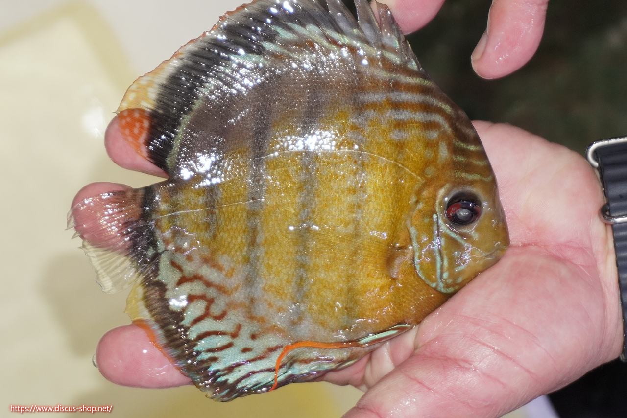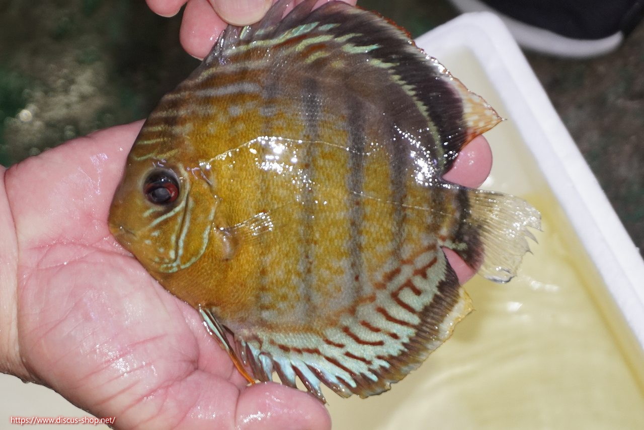 グリーンディスカスの中でも最もバリエーションが豊富でラージスポットタイプ、スポットラインタイプをはじめ、ロイヤルラインタイプなどの極上個体。またベースカラーの黄色、ホリゾンタルラインの青み、スポットの赤と最もカラフルな種となります。仕上がれば改良品種顔負けのど派手なパターンを持つ魅力的な産地の個体となります。