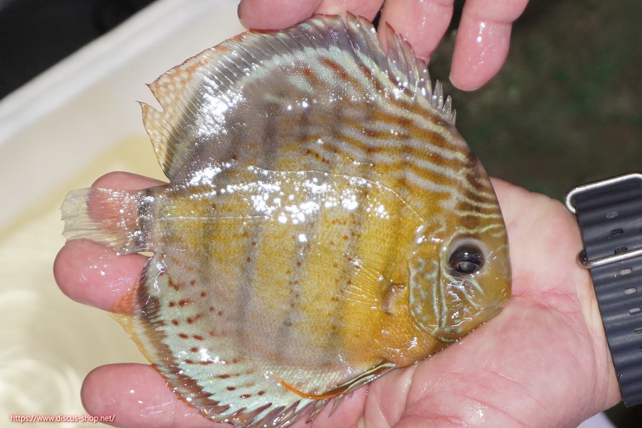 グリーンディスカスの中でも最もバリエーションが豊富でラージスポットタイプ、スポットラインタイプをはじめ、ロイヤルラインタイプなどの極上個体。またベースカラーの黄色、ホリゾンタルラインの青み、スポットの赤と最もカラフルな種となります。仕上がれば改良品種顔負けのど派手なパターンを持つ魅力的な産地の個体となります。