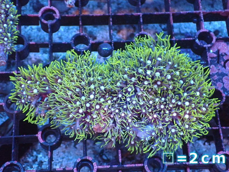 【サンゴまとめ買い割引き10%〜20%OFF対象商品】 【サンゴ】【通販】スターポリプ(メタリックグリーン)Mサイズ(個体販売)(生体)(サンゴ)