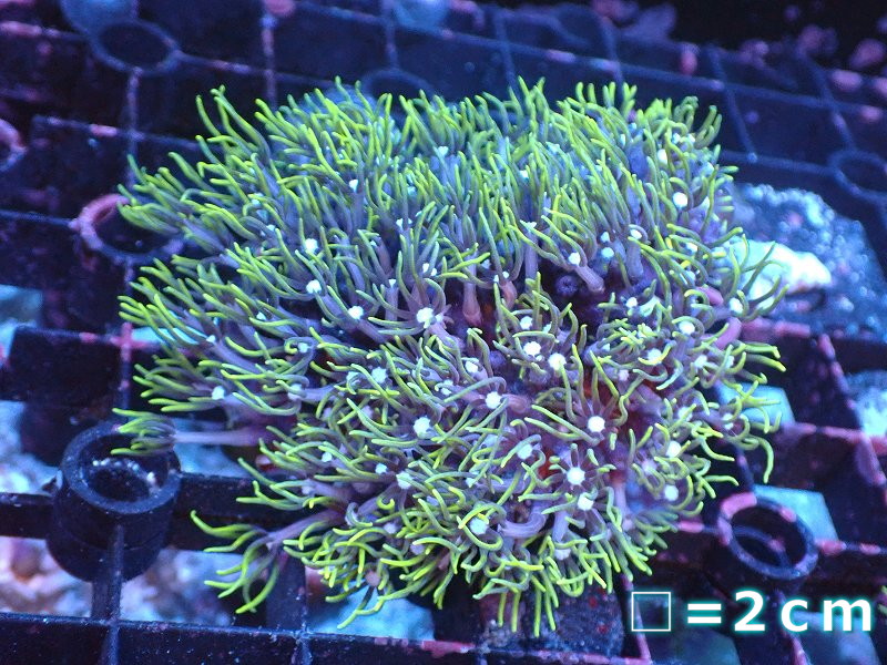 【サンゴ】【通販】スターポリプ(メタリックグリーン)SMサイズ(個体販売)(生体)(サンゴ)
