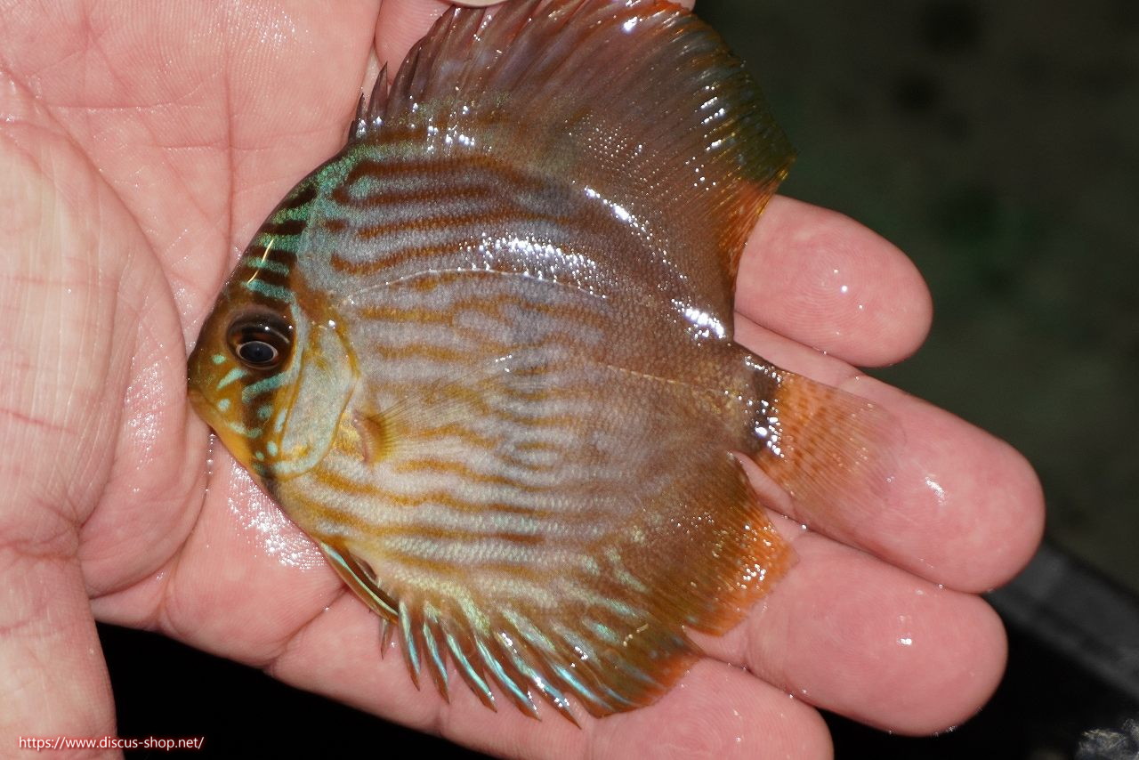 ネグロ産のヘッケルディスカス。ワイルドディスカスらしからぬ際立った青みを持ちベースカラーのえんじ色と相まって非常に美しい発色を見せます。名のごとくフェイス部分の青みは他の産地のヘッケルディスカスとは一味違った表現を持ちます。