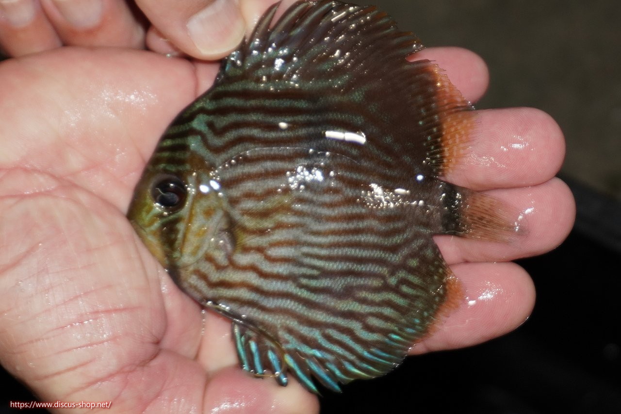 ネグロ産のヘッケルディスカス。ワイルドディスカスらしからぬ際立った青みを持ちベースカラーのえんじ色と相まって非常に美しい発色を見せます。名のごとくフェイス部分の青みは他の産地のヘッケルディスカスとは一味違った表現を持ちます。