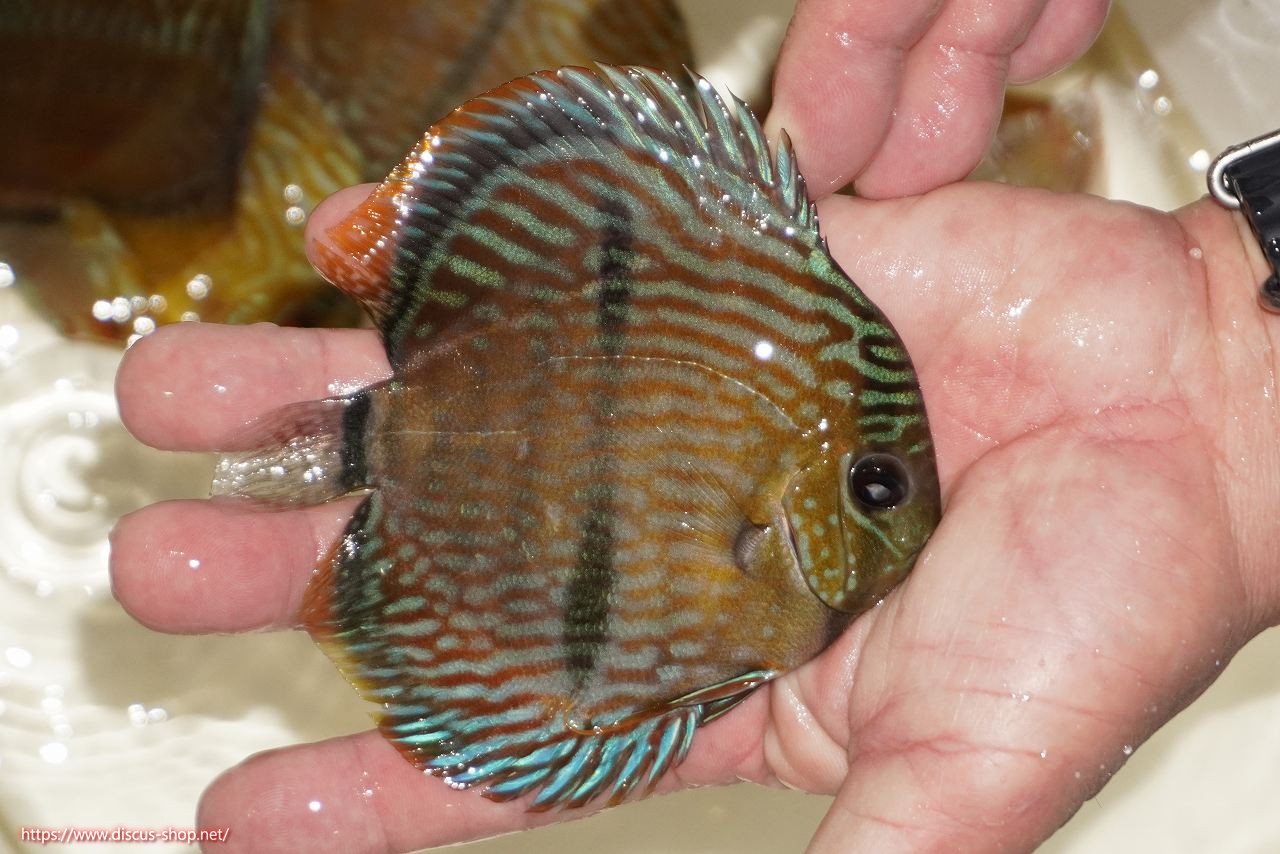 イエローベースが美しいソリッド、ソリッドセンターバー、ロイヤルブルーが混生するウラリアチャンネルに絡む有名産地。 きめ細かな鱗からの上品な発色、ロイヤル個体の明瞭なラインパターン、千差万別の個体差はワイルドディスカスの魅力を存分に持ち合わせた個体といえます。