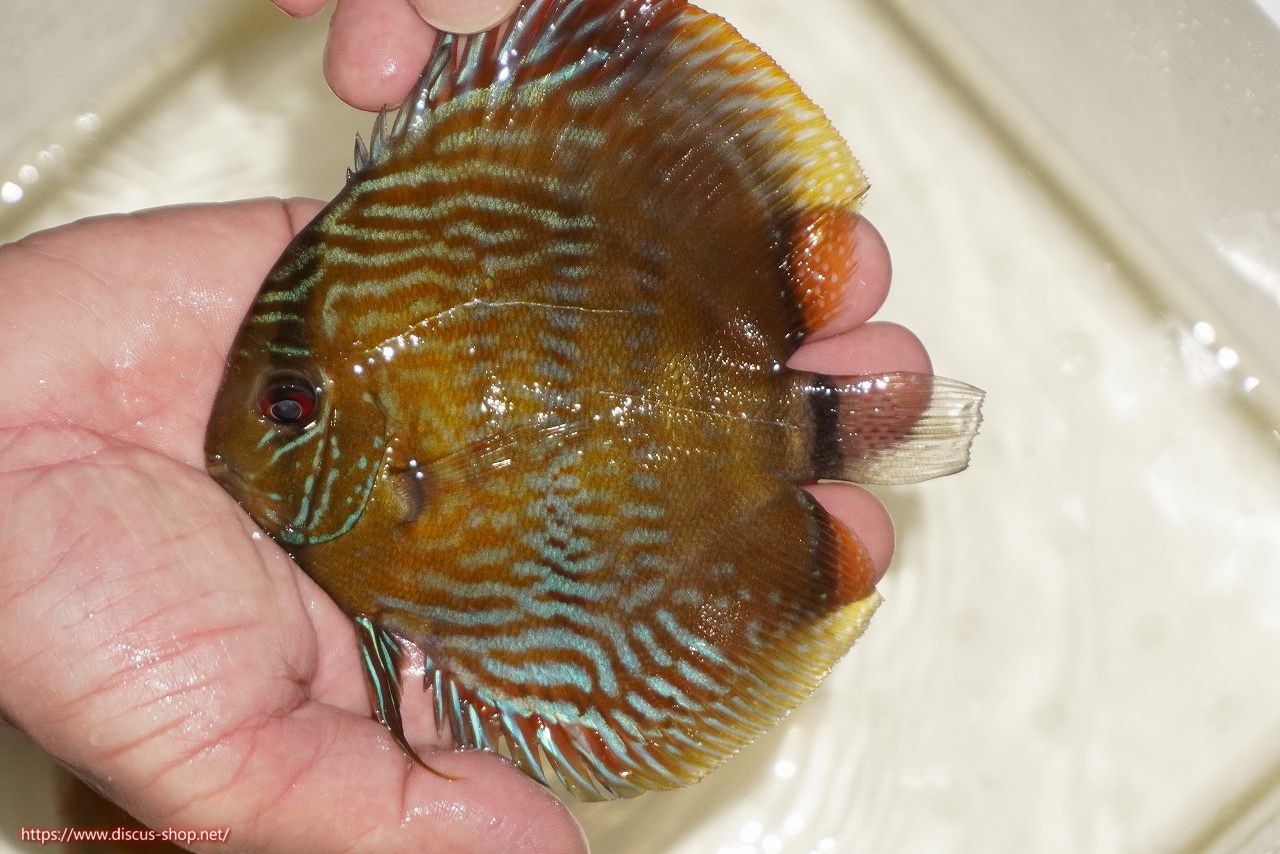 イエローベースが美しいソリッド、ソリッドセンターバー、ロイヤルブルーが混生するウラリアチャンネルに絡む有名産地。 きめ細かな鱗からの上品な発色、ロイヤル個体の明瞭なラインパターン、千差万別の個体差はワイルドディスカスの魅力を存分に持ち合わせた個体といえます。