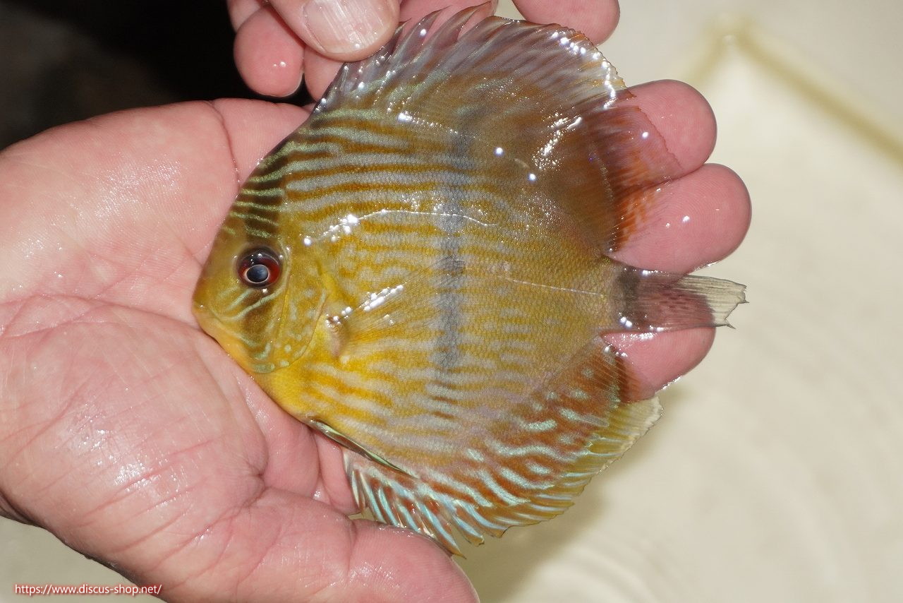 イエローベースが美しいソリッド、ソリッドセンターバー、ロイヤルブルーが混生するウラリアチャンネルに絡む有名産地。 きめ細かな鱗からの上品な発色、ロイヤル個体の明瞭なラインパターン、千差万別の個体差はワイルドディスカスの魅力を存分に持ち合わせた個体といえます。
