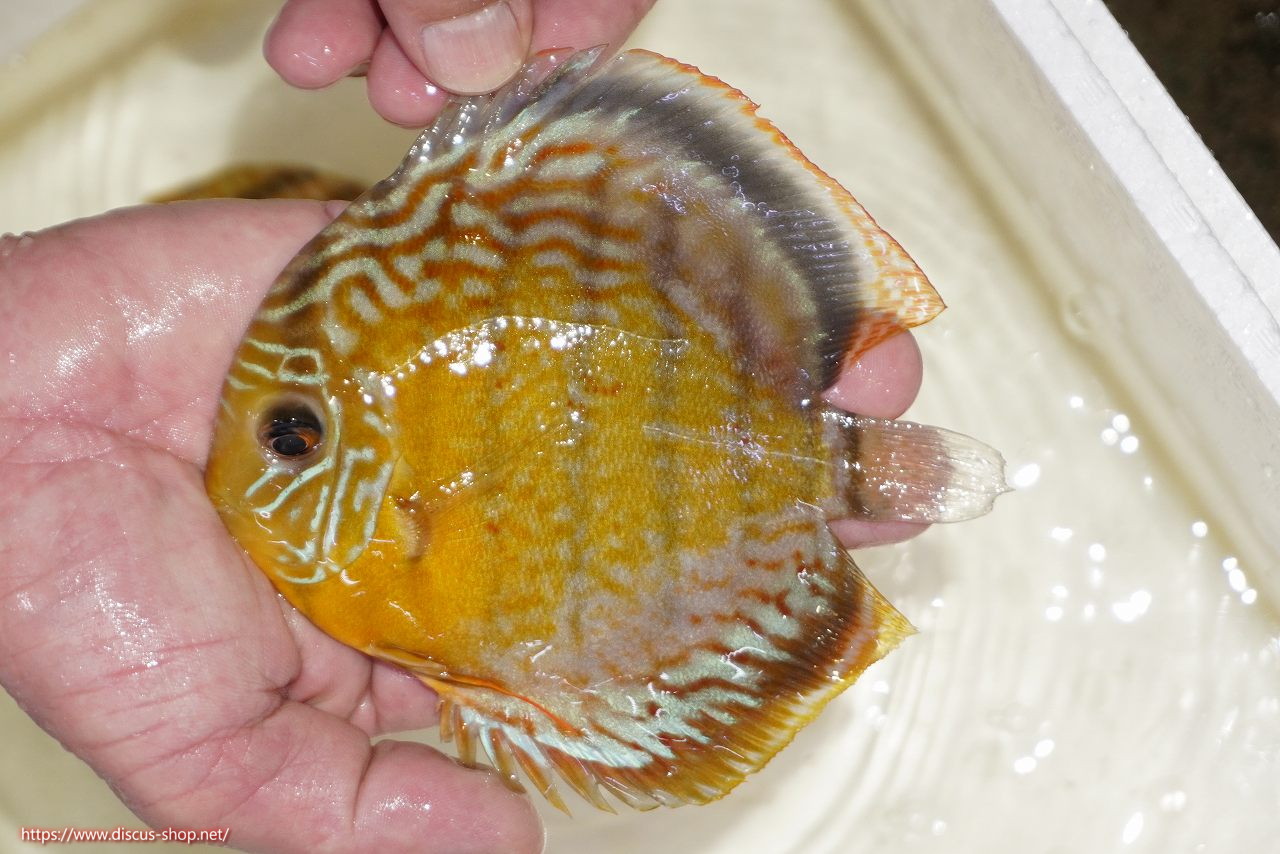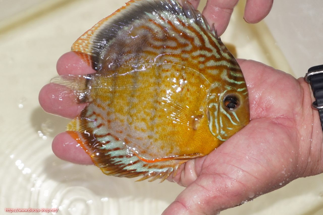 グリーンディスカスの中でも最もバリエーションが豊富でラージスポットタイプ、スポットラインタイプをはじめ、ロイヤルラインタイプなどの極上個体。またベースカラーの黄色、ホリゾンタルラインの青み、スポットの赤と最もカラフルな種となります。仕上がれば改良品種顔負けのど派手なパターンを持つ魅力的な産地の個体となります。