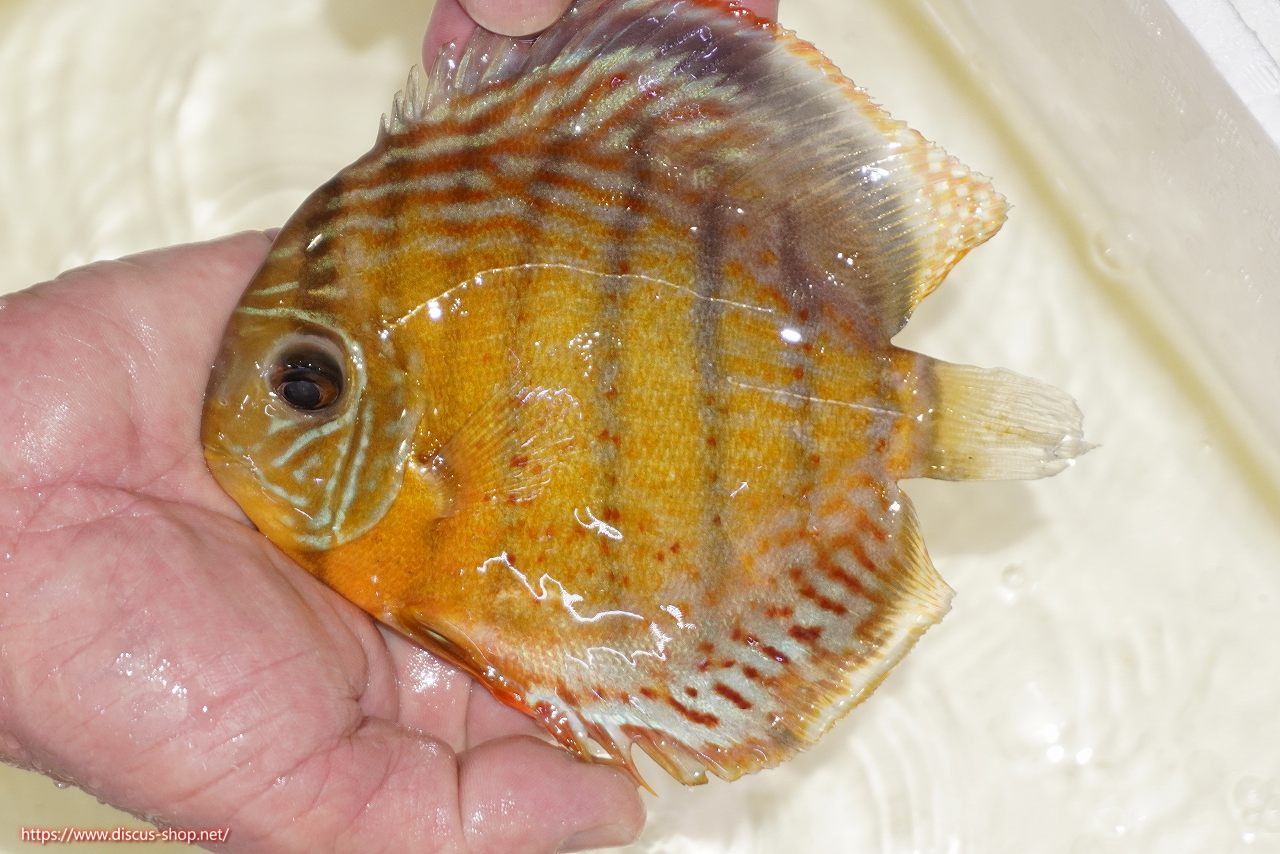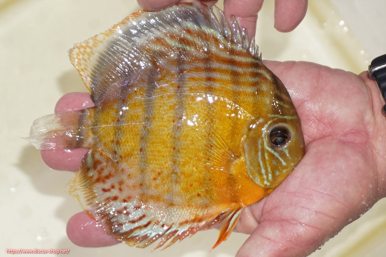 グリーンディスカスの中でも最もバリエーションが豊富でラージスポットタイプ、スポットラインタイプをはじめ、ロイヤルラインタイプなどの極上個体。またベースカラーの黄色、ホリゾンタルラインの青み、スポットの赤と最もカラフルな種となります。仕上がれば改良品種顔負けのど派手なパターンを持つ魅力的な産地の個体となります。