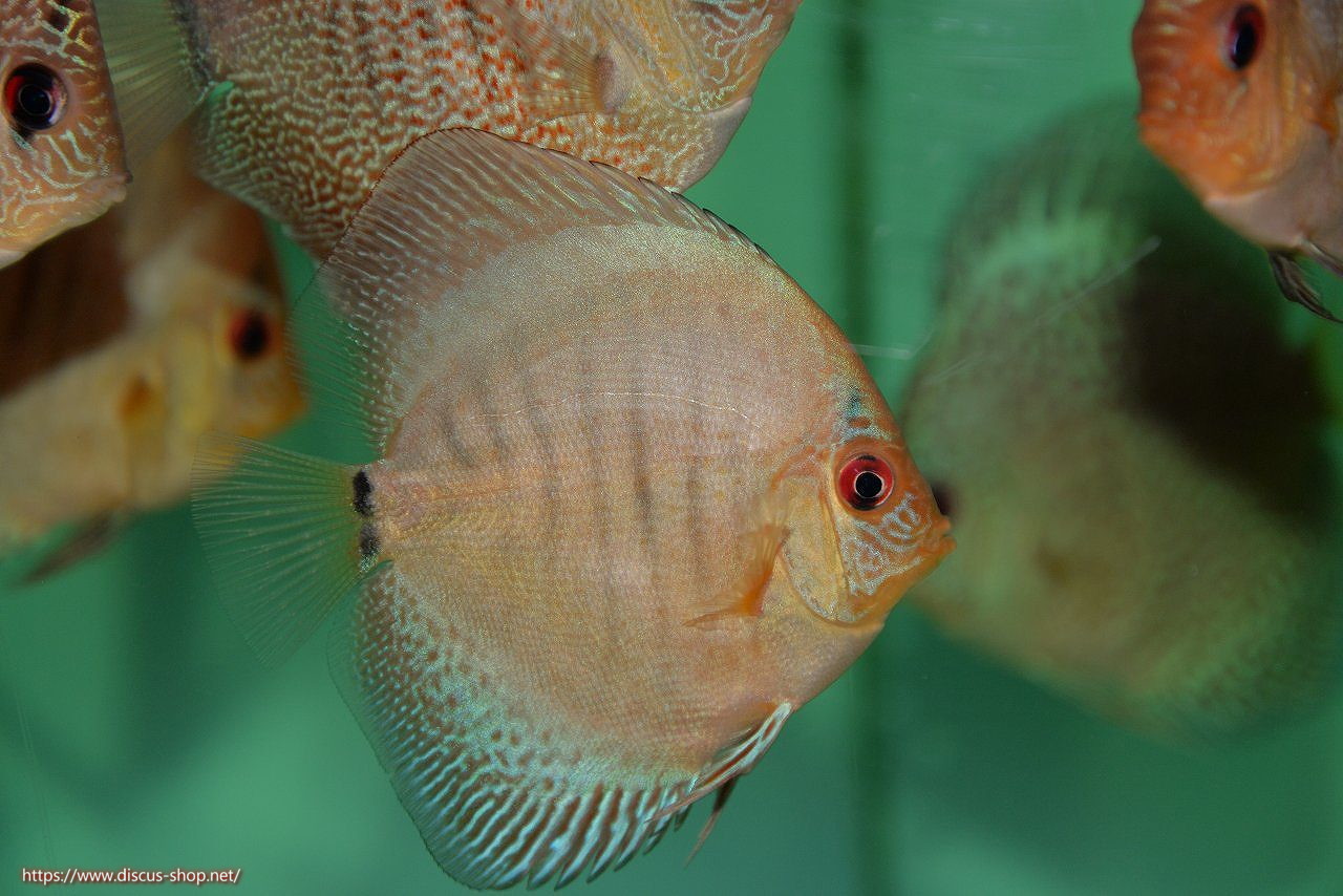 ブルーベースに上品に入るスポット。鮮やかなブルーカラーが非常に美しいスネーク系ディスカス。