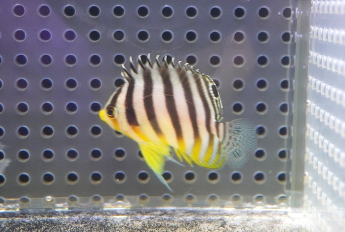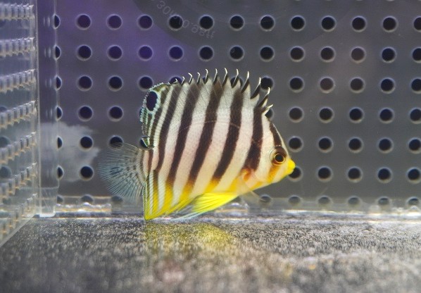 【海水魚・ヤッコ】【通販】状態良好♪シマヤッコ(Sサイズ)(個体販売)(±4cm) No.2(生体)(海水魚)