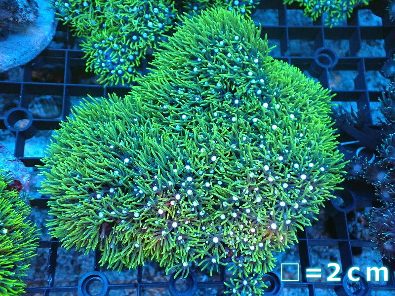 【サンゴ】【通販】スターポリプ(メタリックグリーン)MLサイズ(個体販売)No.2(生体)(サンゴ)
