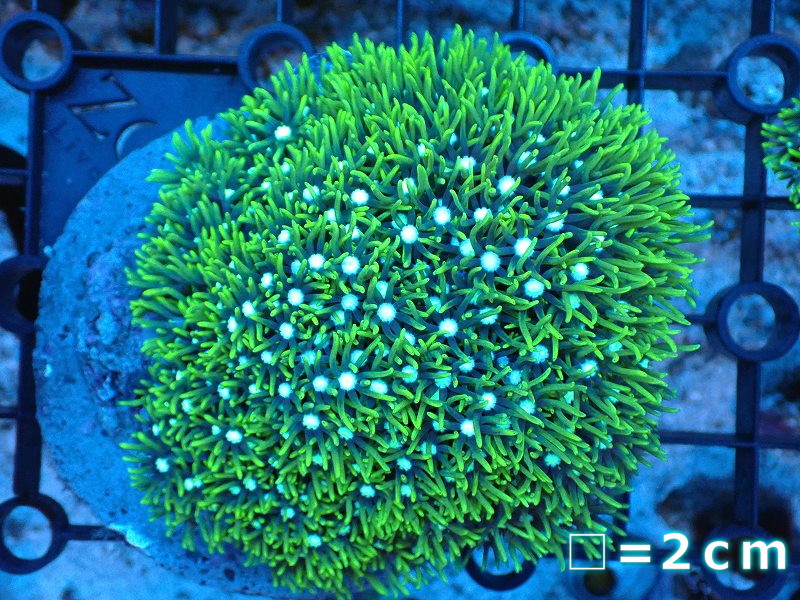 【サンゴ】【通販】スターポリプ(メタリックグリーン)Mサイズ(個体販売)No.5(生体)(サンゴ)