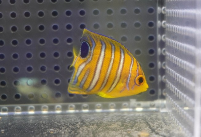 【海水魚・ヤッコ】【通販】人工飼料OK♪【モルディブ産】インドニシキヤッコ(XS)(個体販売)(±4.5cm) No.3(生体)(海水魚)